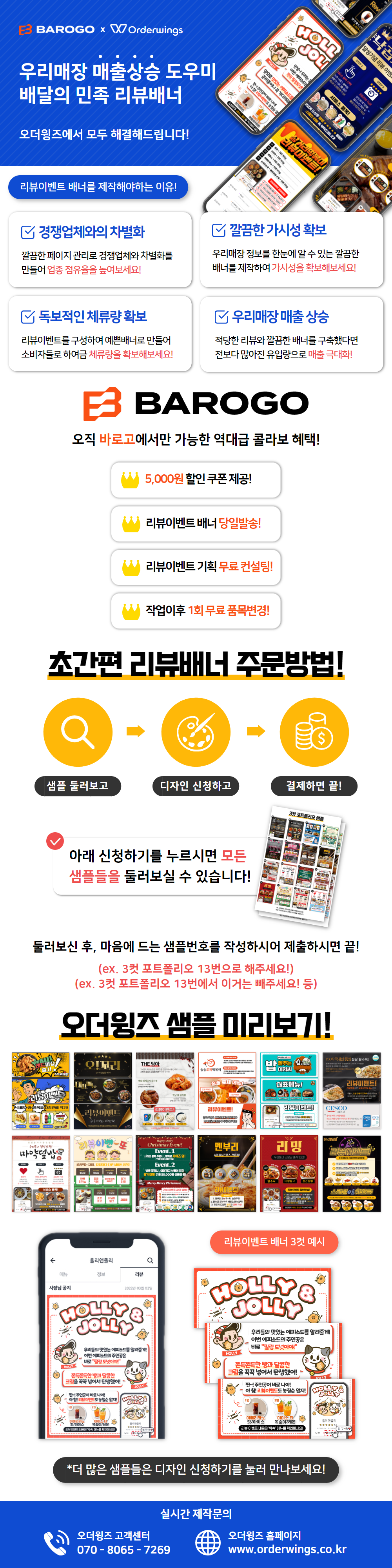 | 구성 | 리뷰 이벤트 배너 디자인 3컷 한눈에 리뷰 정보를 알수있는 깔끔한 배민 리뷰 배너 1컷! (샘플 선택가격이며, 주문제작은 비용협의) |